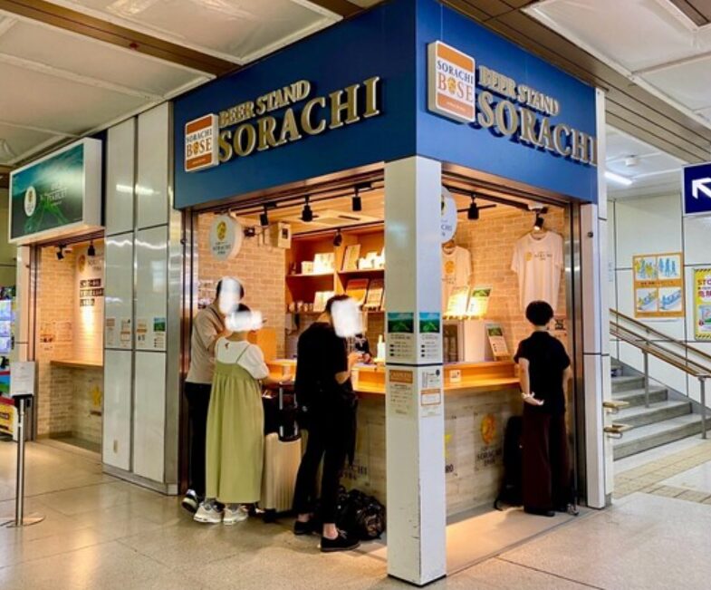 「BEER STAND SORACHI」はその名の通り、サッポロビールが誇る個性派ホップ「SORACHI 1984」を主役としたビール特化型の立ち飲みスタンドです。JR札幌駅の改札内という立地から「電車の待ち時間にサクッと一杯」というちょい飲み需要を支える、旅人にとって非常に便利なスポットです。