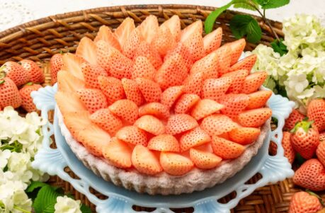 珍しい白いちごをふんだんに使用。一粒で濃厚な香りとたっぷりの果汁が感じられるタルトです。やさしい甘みのババロアとバターたっぷりのパイ生地、そしてジューシーな白イチゴのハーモニーが口の中いっぱいに広がります♪
