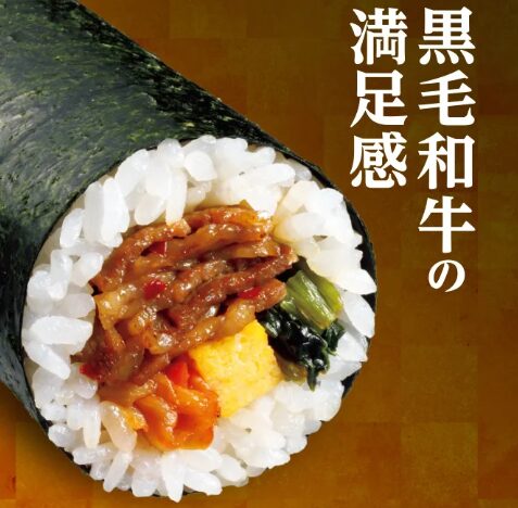 柔らかな肉質が特長の黒毛和牛を使用した逸品。小松菜ナムル、キムチ、厚焼き玉子を組み合わせた満足感のある恵方巻です。※サイズはミニサイズのみ