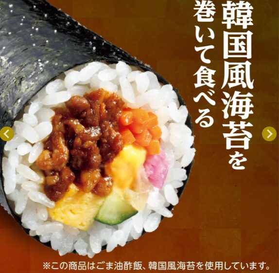 甘辛いプルコギと厚焼き玉子、チェダーチーズソース、にんじんナムル、沢庵、紫キャベツラぺ、胡瓜を、ごま油を混ぜた酢飯で巻き上げた恵方巻です。韓国風海苔を使用しているため、より一層ごまの風味を楽しむことができる一品です。※ミニサイズのみ