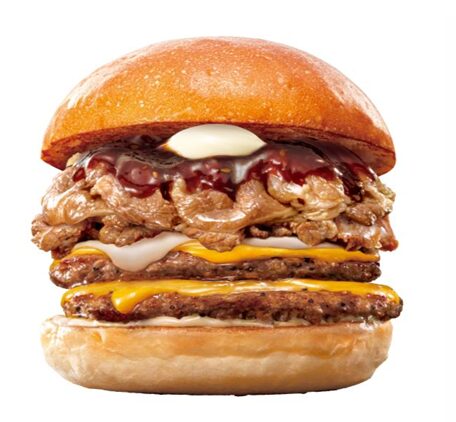 をブレンドしたとろ~りチーズソースと、ガーリックのパンチが効いたカルビだれを合わせ、マヨネーズなどとともに、ふんわりもっちり食感のバンズで挟んだ贅沢な一品。最大の見どころは、最大4枚まで重ねられる「絶品チーズパティ」の圧倒的な存在感。牛肉を最大約8mmに粗挽きしたパティは、肉本来の旨味とジューシーさが特徴です。