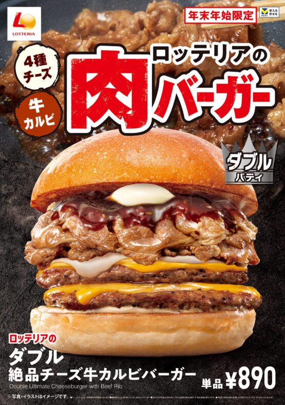 ロッテリアでは、2025年12月26日(金)から2026年1月上旬まで、ボリューム満点のパティを贅沢に重ねた「肉バーガーフェア」を年末年始限定で開催します。