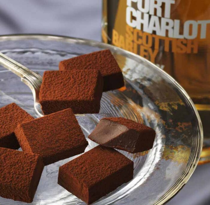 ウイスキーファン垂涎の、スコットランド・アイラ島のシングルモルトを使用した本格派です。「ポートシャーロット スコティッシュ・バーレイ」という、力強いスモーキーさが特徴のウイスキーを使用。ミルクチョコレートの優しい甘さの後に、鼻から抜ける芳醇な燻製の香りがたまりません。