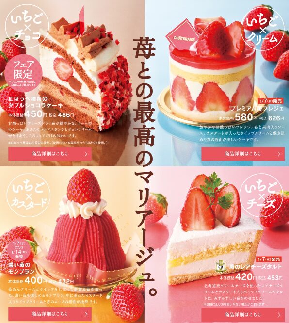 毎年多くのスイーツファンが待ち望んでいるシャトレーゼの「いちごフェア」が、今年も1月9日(金)より順次スタート!