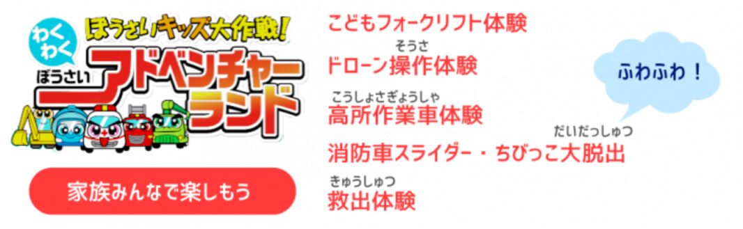 - 子どもも大人もみんなで楽しく防災を学ぼう!「ぼうさいアドベンチャーランド」同時開催