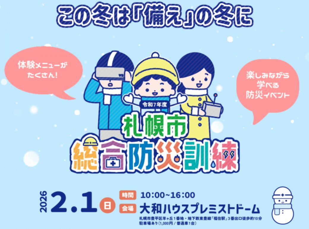 2026年2月1日(日)に大和ハウス プレミストドーム(旧札幌ドーム)で開催される「令和7年度 札幌市総合防災訓練」についてまとめました。