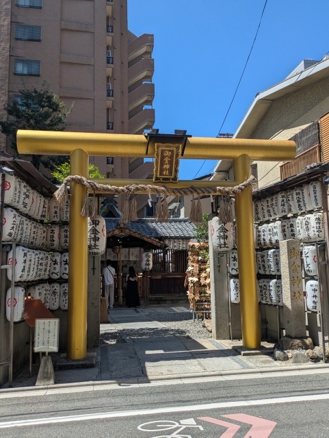 御金神社は街中にありながら、その強烈な「金」のイメージとご利益で全国的に有名な神社です。場所は京都府京都市中京区にあり、黄金色の鳥居が印象的です。住宅街やビルの合間にありながら、入口の鳥居全体が黄金色に輝いているのが最大の特徴で、この黄金色の鳥居が「金運の神様」の存在を強く印象付け、参拝者の期待を高めています。